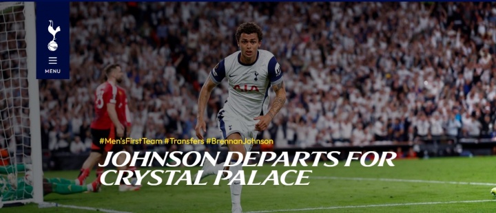 01月02日讯 官方消息,水晶宫签下热刺前锋布伦南·约翰逊。